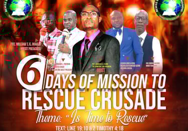 Mission To Rescue Crusade is an annual event where Rescue Word Church passionately reaches out to cities and towns to bring salvation and deliverance. Through this powerful program, we have seen God move mightily—healing the sick, delivering the oppressed, and restoring lives by His grace. Many lives have been transformed as souls are rescued from the grip of darkness and brought into the light of Christ. We believe that with faith and prayer, the crusade continues to be a vessel of God's mercy and power, rescuing people from the influence of Satan and ushering them into a new beginning in Jesus Christ.